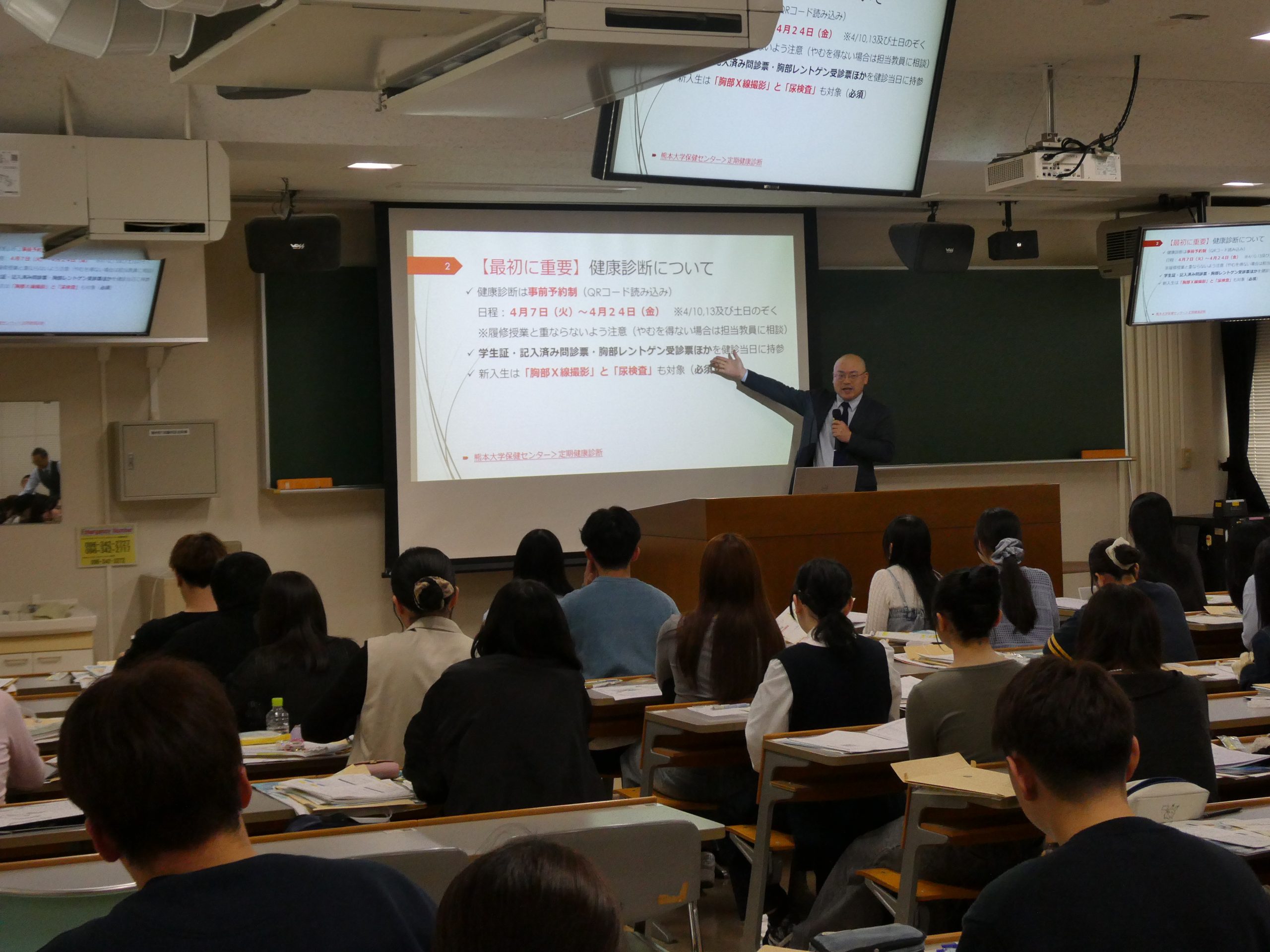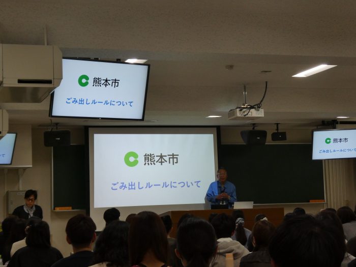 鹿嶋先生から「教務関係」、山口智哉先生から「学生支援・留学関係」、熊本市から「ゴミ出しルール」について説明がありました。