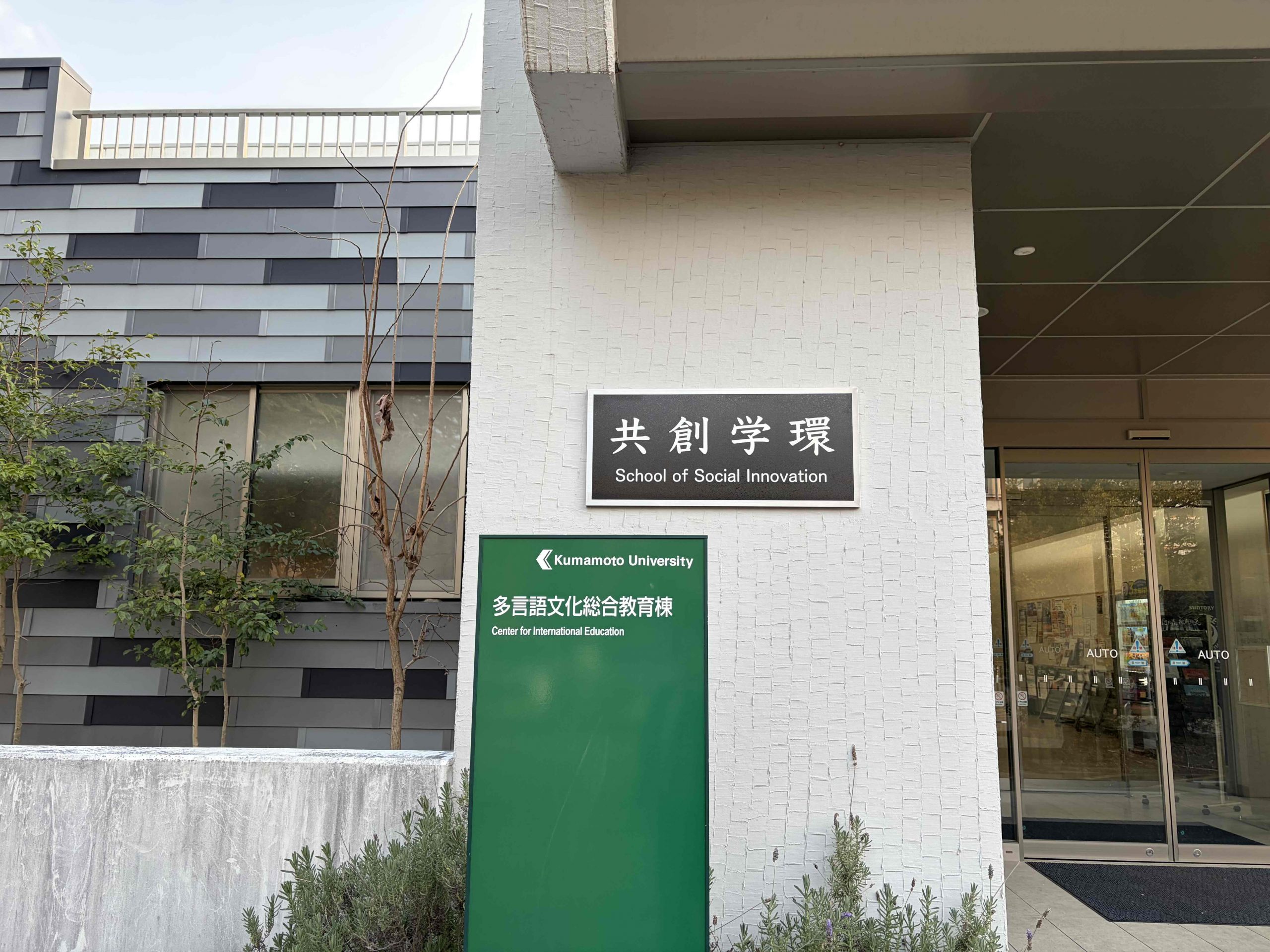 この度、熊本大学共創学環の銘板を、黒髪北地区の多言語文化総合教育棟に設置いたしました。